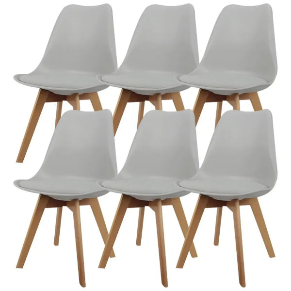 Padded Seat Wooden Leg Dining Chairs - Pack of Six - Grey Colour