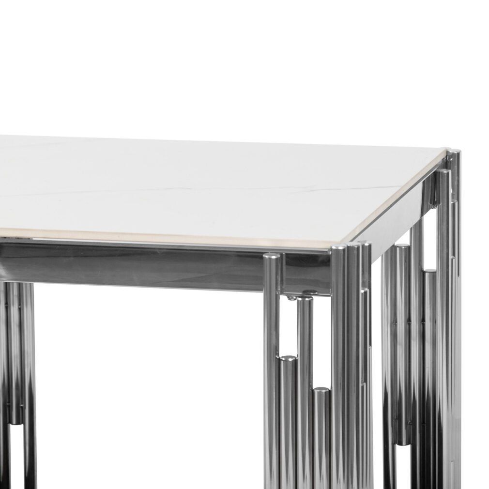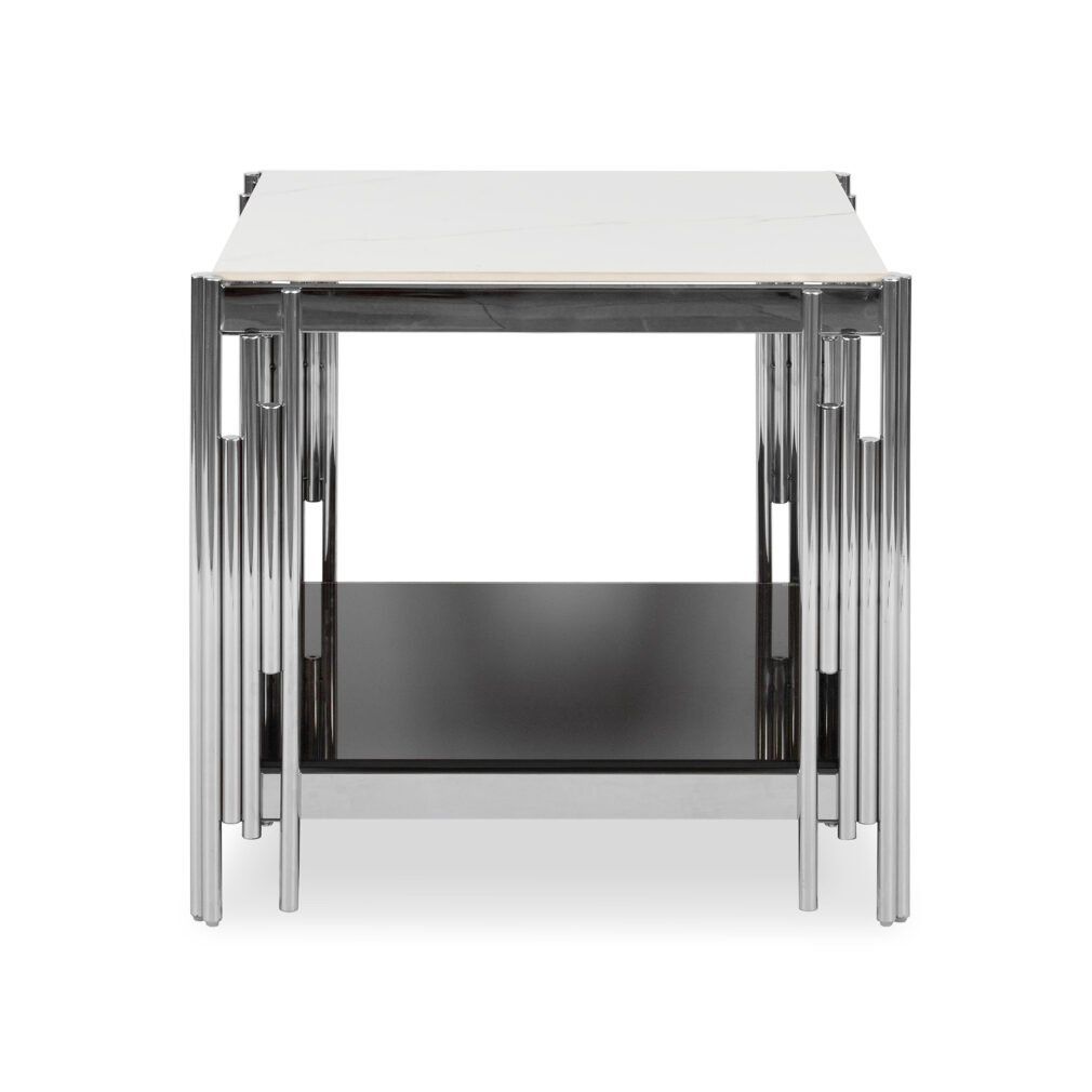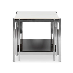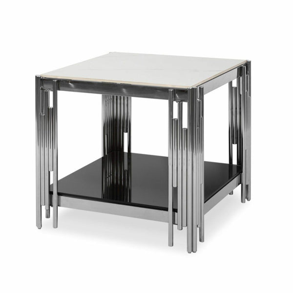 Side / End Tables - Faux Marble Top - With Stainless Steel Base